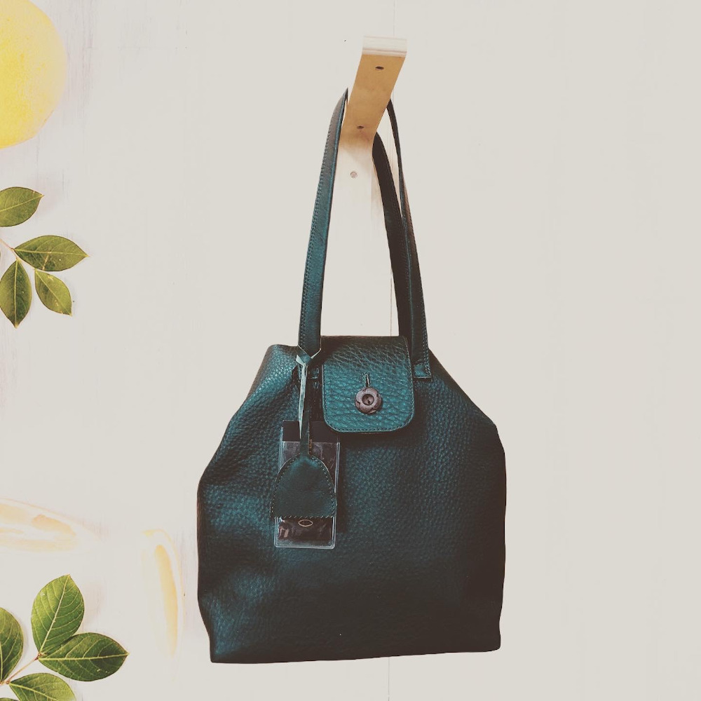 柔らか牛革使用。ショルダー金具の付ける位置で、深くなったり、浅くなったり。