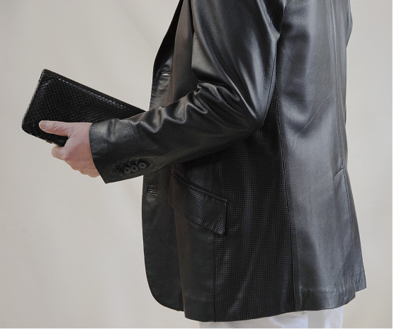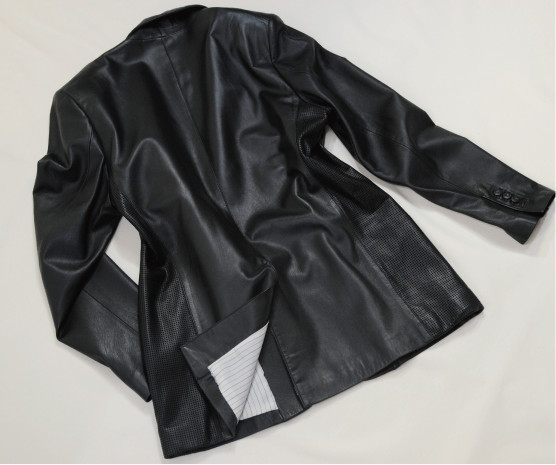 厚さは、0.8mmと薄手ですが、強度を付ける為に、前身頃の内側に全面極薄のトリコット芯を貼り、更に前芯とアームホールなどの力の入る部分は、トリコット芯で補強して、長年着用しても丈夫で長持ちするように、仕立てております。
