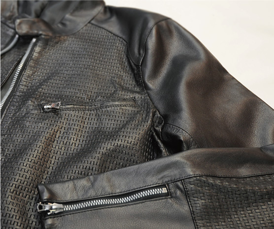 イタリアのタンナリー(なめし工場)のアルフレッドモッタ社の素材を前身頃に、後ろ、袖には、イタリア製のラム革を使用しています。 まるで編み込んだような表情が特徴の、しなやかで、着れば着るほど味が出る、大満足の一着間違いなし。 シンプルで、コーディネイトに取り入れ易いです。