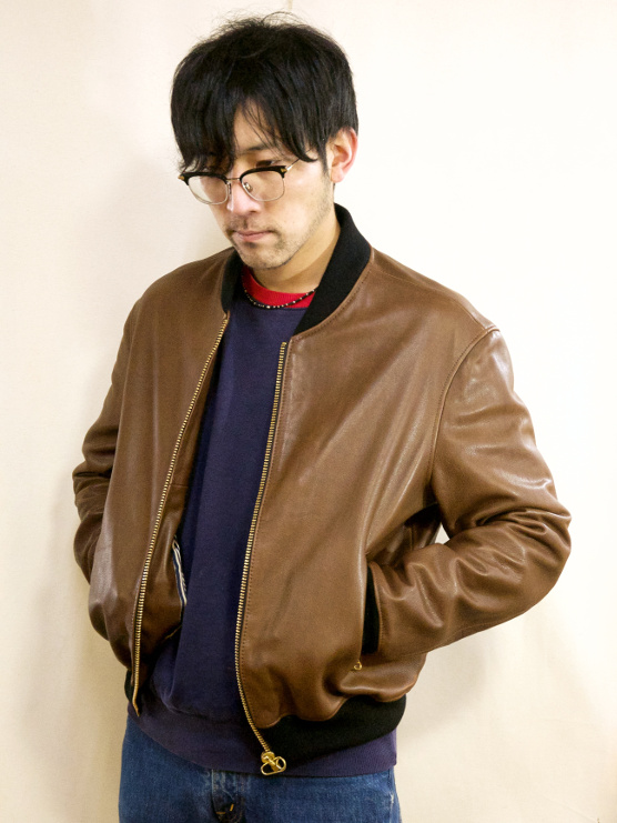 国産の牛革を、日本の一流タンナリー(鞣し職人)がアンティック調な色合いに水染めしました。 風合い重視に仕上げた逸品。MA-1を現代的にデザインし、幅広く合わせられるよう仕立て上げました。
